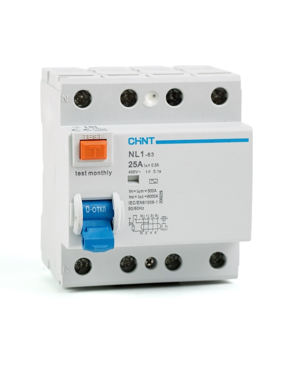 CHİNT NL1 Serisi Anma Kaçak Akımı 30mA - Anma Akımı 25A - Trifaze Kaçak Akım Koruma Rölesi