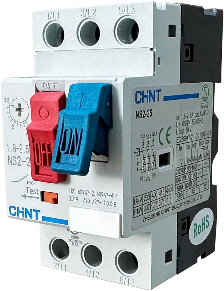 CHİNT NS2X Serisi - Kesme Kapasitesi 100kA - Nominal Akım 1.6A - 3 Kutuplu - 220 VAC - Motor Koruma Şalteri